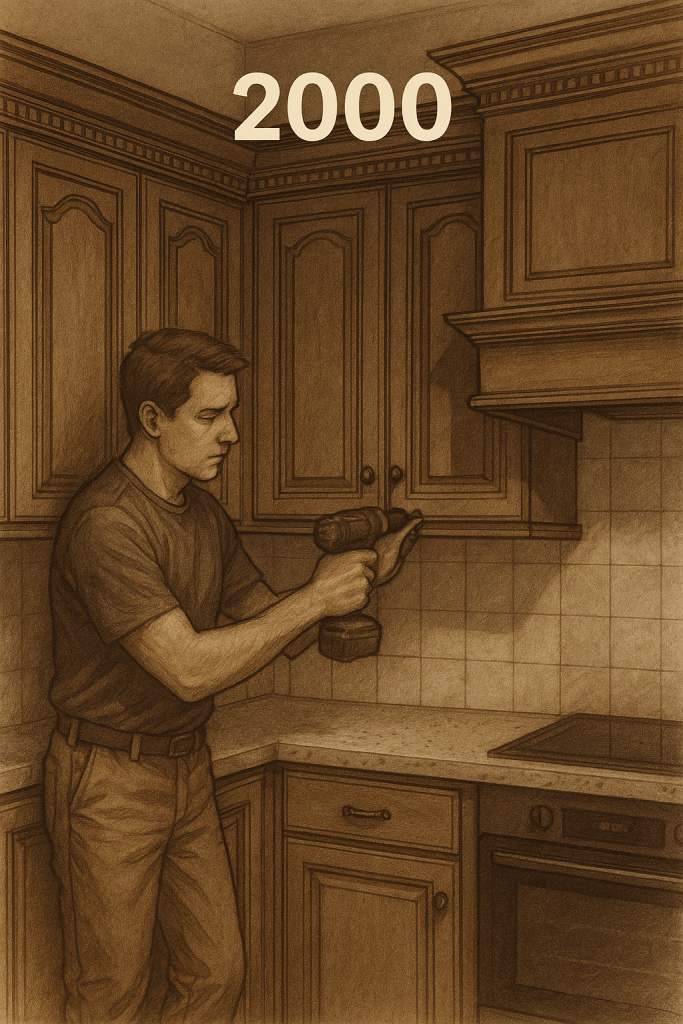 2000 : corniches, moulures, meubles en bois massif.